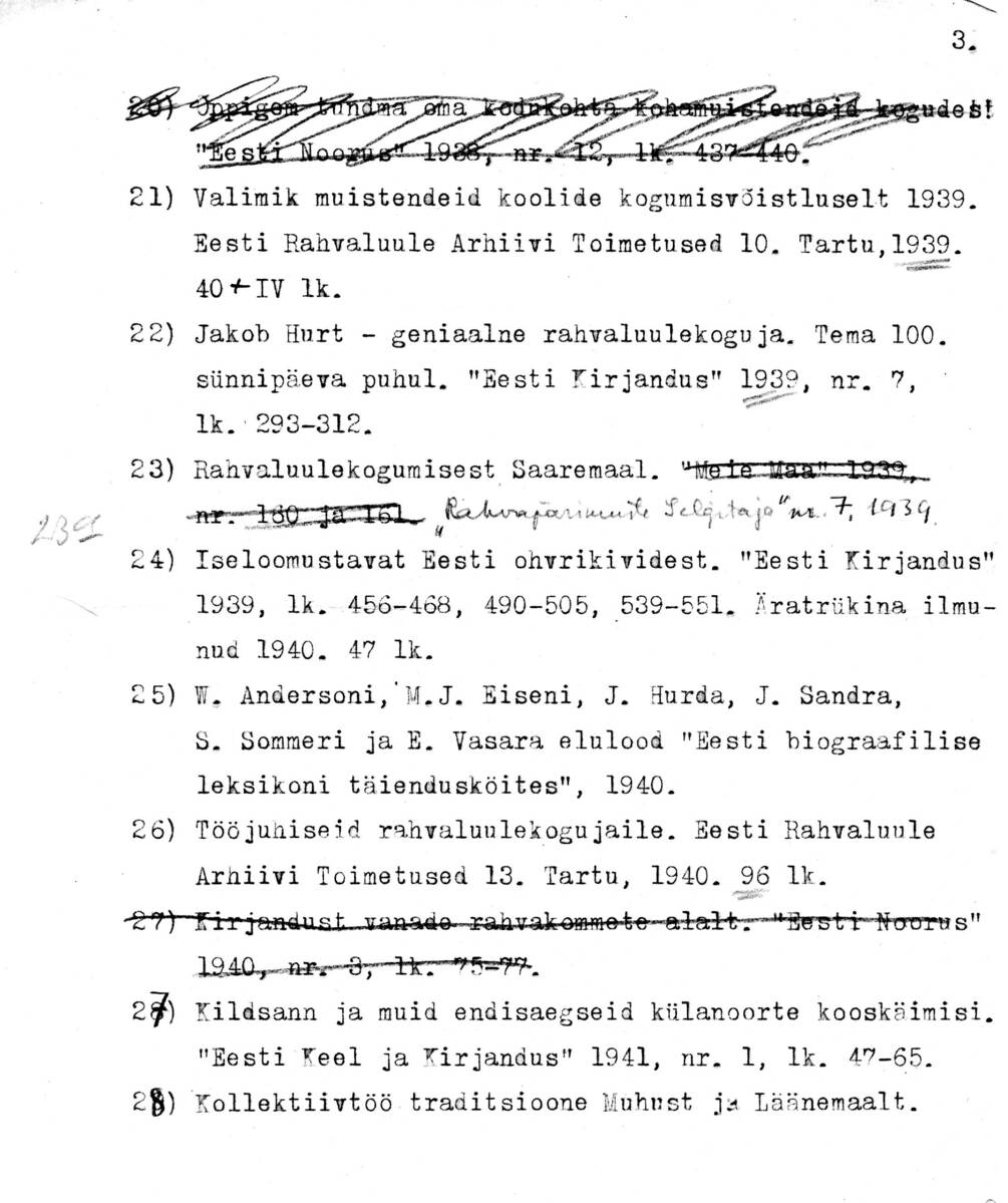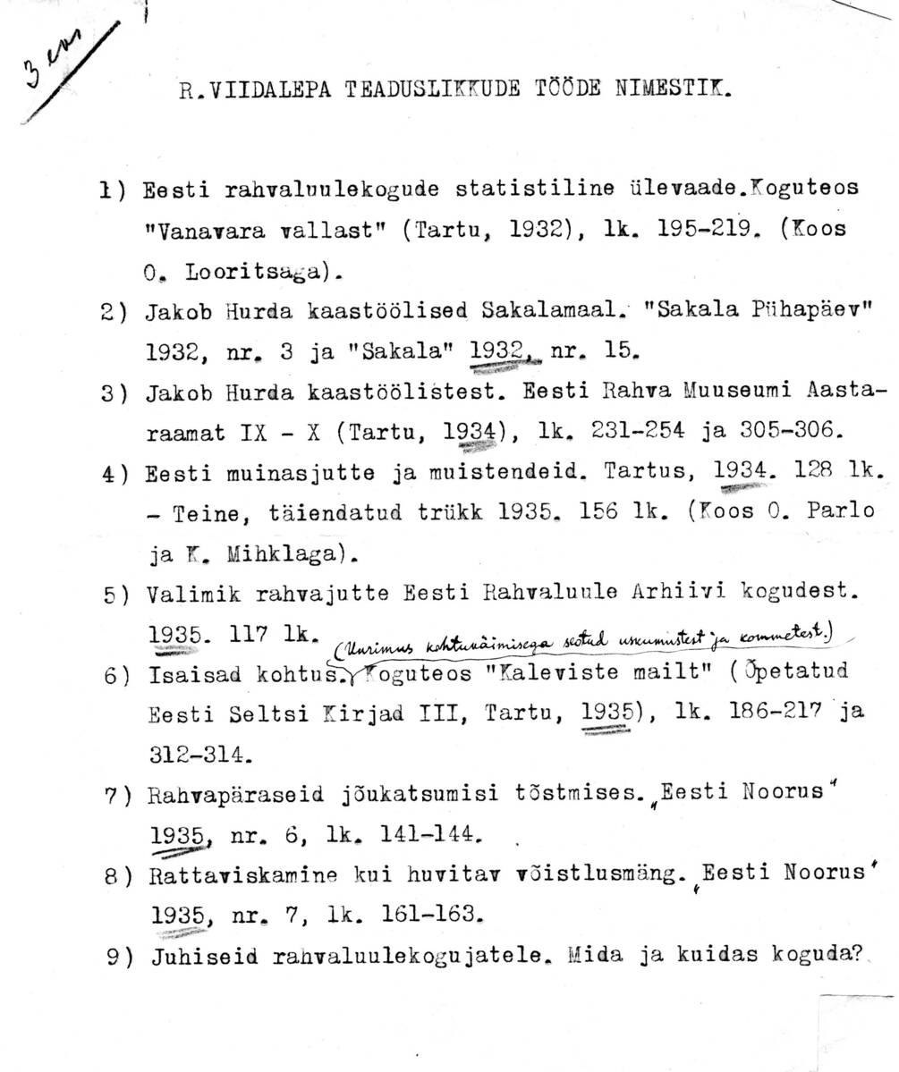 Viidalepp, Richard 1937. Von einem grossen estnischen Erzähler und seinem Repertoir. – Acta ethnologica, kd II, nr 3, lk 158–173.